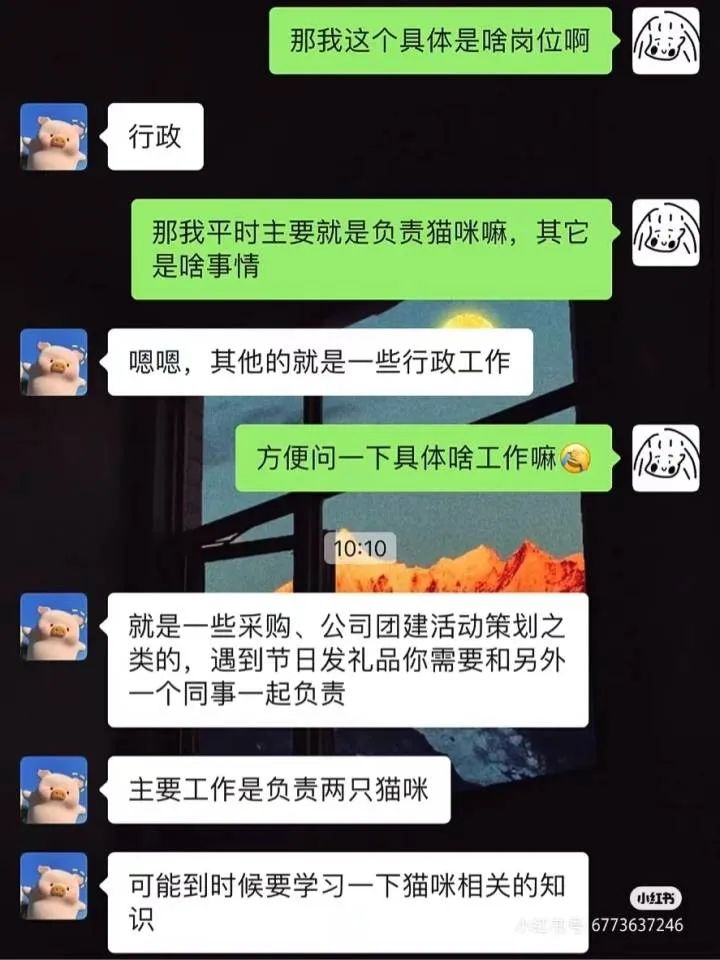 “很新奇,感觉工作应该很轻松。”刘慧说,自己喜欢动物,家里就养着一条狗,只是没养过猫。但她一度心里打鼓,担心是不是被骗了。获得面试成功的通知后,她还特意在社交平台发帖询问,“这个工作能去嘛!不想错过,但是会不会没有前途?”