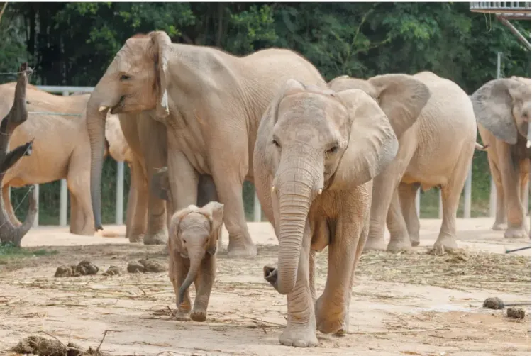 在国家林业和草原局、海关总署等津中两国相关主管部门的联合推动之下,根据中非动物保护合作相关的计划,2015年7月,一群非洲大象来到清远长隆安家,清远长隆承接该项目后,开展了针对非洲象的科学研究,攻克了非洲象迁地保护中遇到的难题,填补了国内大种群迁地保护非洲象的多项空白。今年,广东清远长隆国家级世界珍稀野生动植物种源基地接连传来成功繁育非洲象宝宝的好消息。5头非洲象幼崽分别在今年5月、6月、7月、8月和10月陆续出生,这是津巴布韦政府委托清远长隆对非洲象实施迁地保护7年以来,第一次连续成功繁育非洲象幼崽,而它们也是目前仅存的在我国出生的非洲象个体。