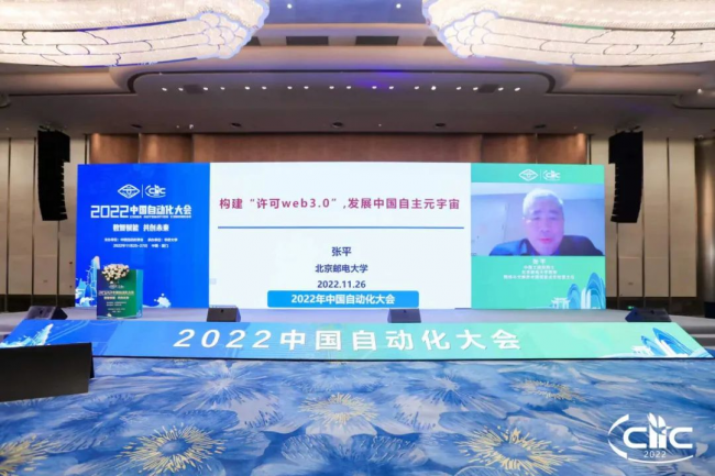 在大会报告环节,中国工程院院士、北京邮电大学教授、网络与交换技术国家重点实验室主任张平作题为“构建‘许可web3.0’,发展中国自主元宇宙”的报告。他指出,发展我国元宇宙的精髓在于以“灵境泛在互联”为抓手、先进网络系统为基座,建立“智简”自主创新体系,构建元宇宙架构。与传统互联网不同,元宇宙是以网络化广义虚拟现实应用为情境,融合网络通信、新型交互、数字孪生、区块链、人工智能等多种新技术而产生的Web3.0互联网应用环境。基于Web3.0,“灵境协同”能够拓展虚拟世界与真实世界的无限域界,具有实时性、沉浸式,高敏感、超真实等本质属性。元宇宙不仅包括数字化的物理世界、多维度虚拟世界的延伸,而且涵盖了具有高度智慧能力的智能体合集,是“境”与“灵”的统一体。