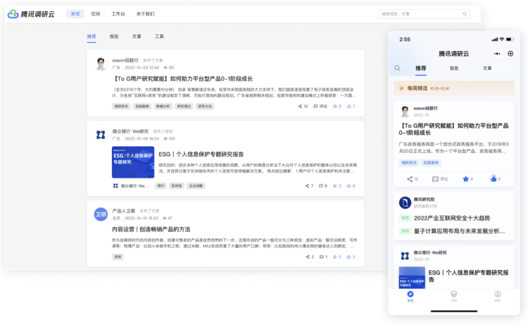 平台将免费开放多年来沉淀的研究报告、调研干货、实用工具、独家洞察等内容,供业内人士使用及交流。目前,已有近千份研究报告上传发布,涵盖金融、电商、科技、互联网等多个领域。
