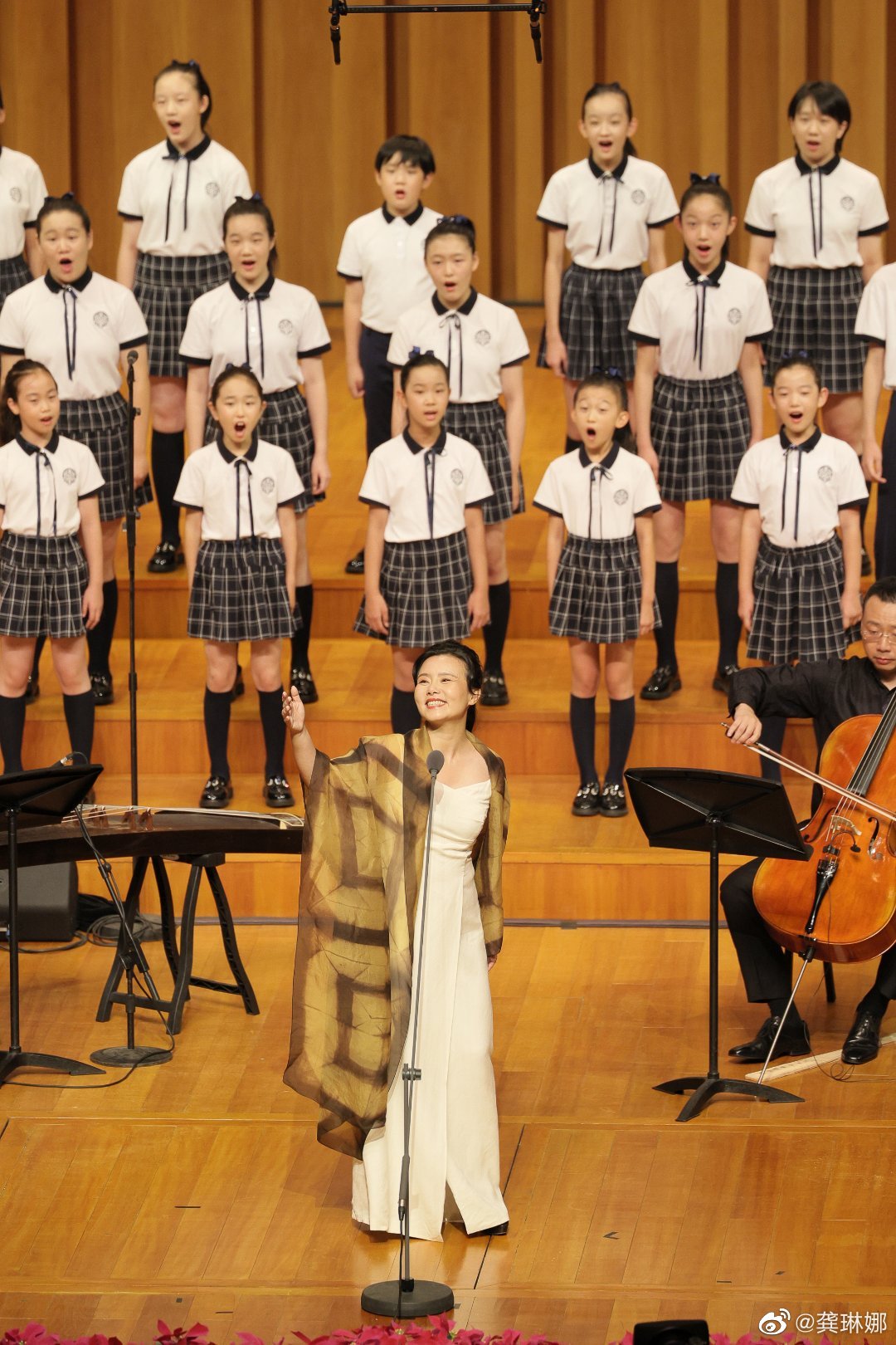 龚琳娜与童声合唱团在国家大剧院演出。