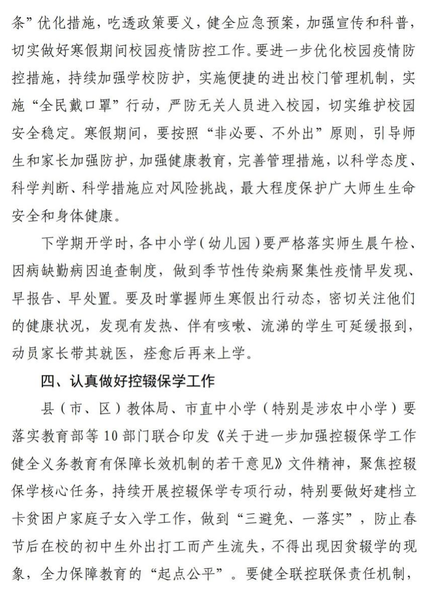 《关于做好2022年秋季学期结束和寒假期间有关工作的通知》