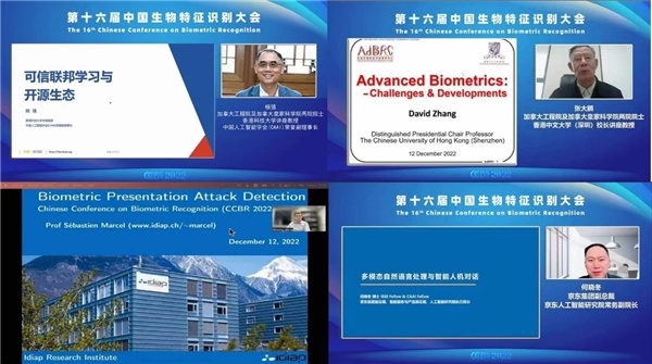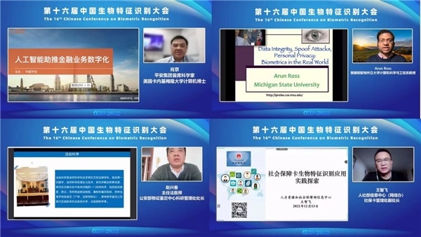 微众银行首席人工智能官杨强院士、香港中文大学(深圳)数据科学学院校长学勤讲座教授张大鹏院士、京东集团副总裁何晓冬、平安集团首席科学家肖京、瑞士生物识别研究与测试中心主任Sébastien Marcel、美国密歇根州立大学计算机科学与工程系教授Arun Ross、公安部物证鉴定中心科研管理处处长赵兴春以及人社部信息中心(网信办)社保卡管理处副处长王智飞等8位嘉宾分别作了特邀报告,主题涉及可信联邦学习与开源生态、多模态自然语言处理与智能人机对话、人工智能助力数字经济高质量发展、法庭科学生物特征识别技术发展、社会保障卡生物特征识别应用实践探索等前沿内容。