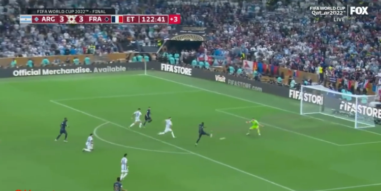 加时赛第122分钟,法国队面对阿根廷门将射门,可惜未能攻入,马丁内斯挽救了阿根廷队。而阿根廷队也在随后的快速反击中错失机会。