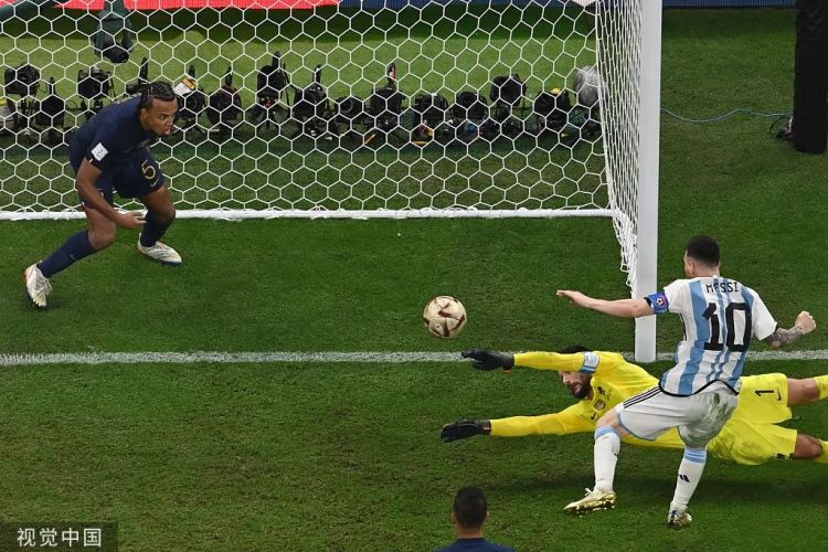 比赛第96分钟,同样是在大禁区外,梅西一脚远射还以颜色,但被法国队门将扑出。