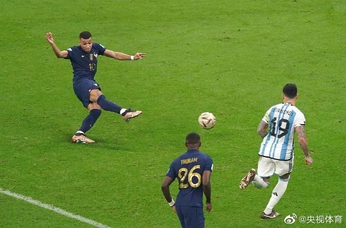 加时赛第124分钟,姆巴佩在阿根廷队禁区内如入无人之境,连过几人,可惜最终还是被阿根廷队守住。