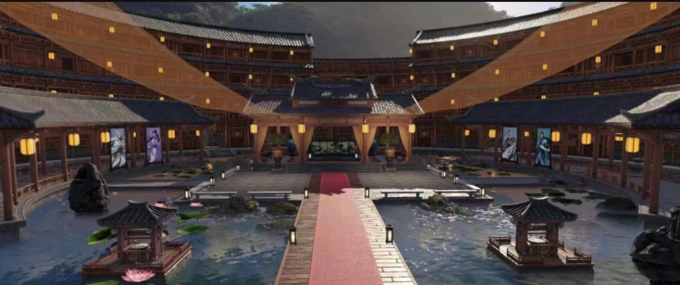 获得几方一致通过,为整座土楼增添了厚重的历史感和故事性,环兴楼的残墙得以保留,结合了《天涯明月刀》的国风意象和唯美氛围,原来的残垣处搭建了月球灯,被改造成观景楼。