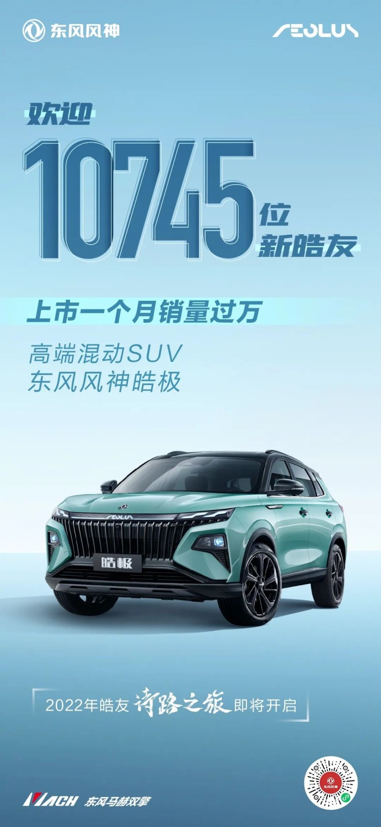 作为2022年东风风神重点战略车型,首款搭载东风马赫双擎混动系统的SUV皓极,凭借东风马赫动力的加持以及全面越级的空间尺寸和智能配置,皓极以40万级的产品实力与价值,树立着自主混动SUV新标杆,深受广大“皓友”青睐,自9月26日上市仅1个月就劲销10745辆。