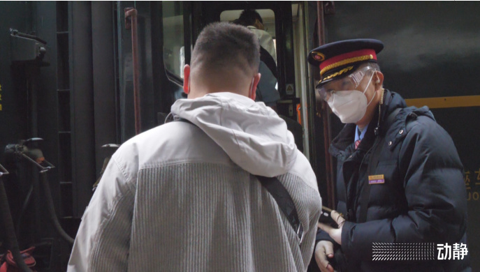 除了守好乘客上下车厢的门,列车员姜国友也守住了列车的“边关”,“这个是列车尾部的端门,春节是阖家欢乐的节日,我就守着这个边关,关系到旅客的生命安全,你必须要把它守好。”