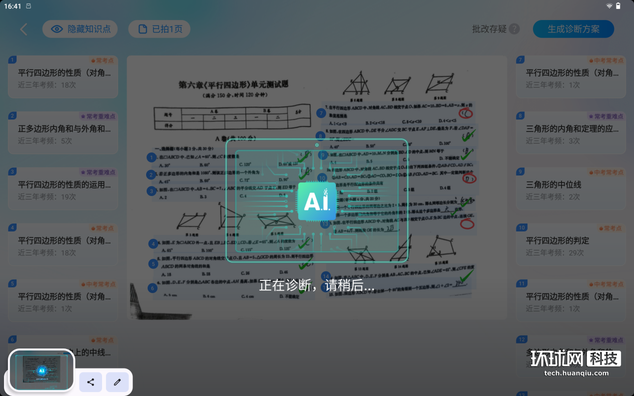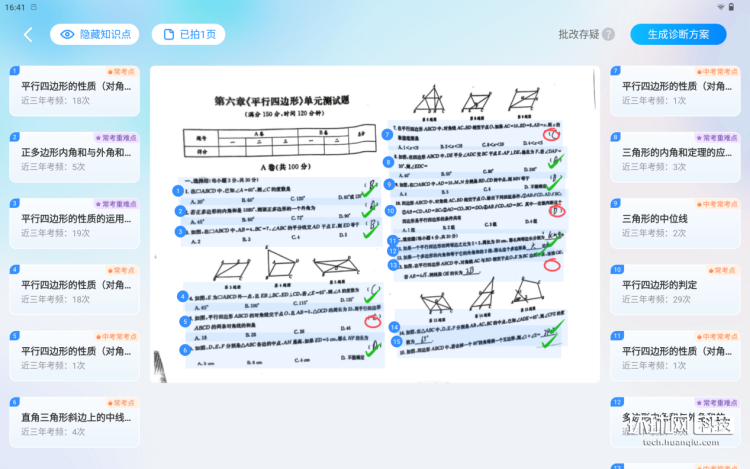 实测不到3秒钟,就能够完成对整张试卷完成情况的诊断,很快速地就能够得到全面、精准的反馈。