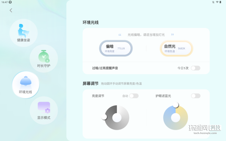 我们实测发现,当出现趴桌、驼背等不良姿势时,学习机会自动提醒,会在屏幕上跳出弹窗,也可以设置语音提醒,并同步生成实时的记录报告,一天下来,学习时出现了什么不良坐姿,都能够“记录在案”。环境光线过暗或者过亮,学习机也能智能检测到,并在屏幕中实时给出提醒。绑定讯飞AI学习机公众号,还可以在App端对科大讯飞AI学习机T20 Pro进行管理,守护孩子的学习健康状态,及时掌握孩子的学习情况。