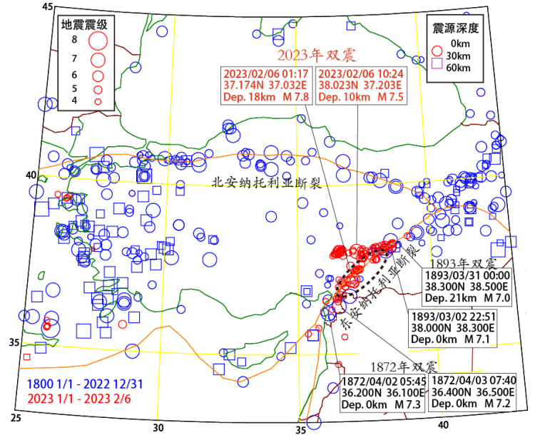 文章发布3天后,土耳其一天发生了两次7.8级地震,地震中心区域和图片标注位置十分接近。但事实上,这片地区一直是科学家研究和关注的重点区域。