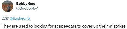 网友@Bobby Goo认为,他们(西方国家)习惯于寻找替罪羊来掩盖自己的错误。