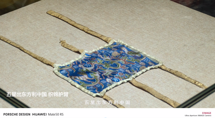 而在这次探险过程中,无论是尼雅古城的遗迹,还是和田博物馆中的“五星出东方利中国”织锦护臂、“王侯合昏千秋万岁宜子孙”锦被,都在华为Mate50系列手机的镜头下被清晰记录下来。“五星出东方利中国”织锦护臂这件国宝级的文物上的山状云,鸟兽纹样,伴以铭文“五星出东方利中国”,在华为Mate50系列十档物理可变光圈、长焦微距等拍摄优势下,展示出真实色彩。虽远隔千万里,如人亲睹其物,隔着屏幕依然让人感受到中华文化的悠久流长扑面而来。