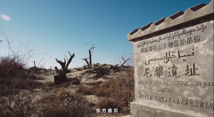 尼雅遗址是新疆地区古文化遗址中规模最大且保存状况良好的大型遗址之一,遗址中心标志物是一座佛塔,塔周围流散分布着组成的聚落、冶作坊遗址群、墓葬等。因此也被称为“东方庞贝”。该地为两汉魏晋时期精绝国的所在地,地处丝绸之路南道的交通要冲,是古代东西方文化交流融汇之地,有丰富的人文历史意义。在考古中,尼雅遗址就曾出土过东汉时期的印花棉布和刺绣。