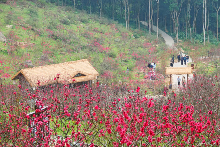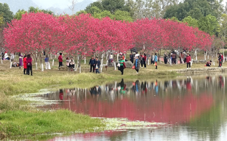 2月22日,游人在广西南宁市青秀山景区桃花坞景点赏花游览。新华社发(喻湘泉摄)