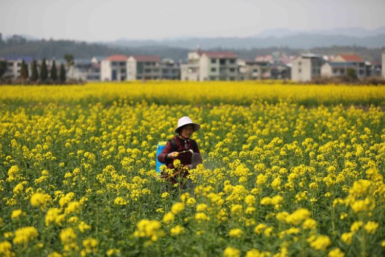 2月20日,贵州省锦屏县敦寨镇亮司村村民在油菜地里劳作。新华社发(杨晓海摄)