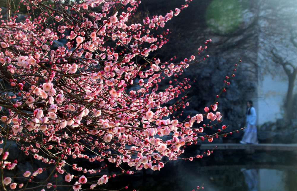 2月22日,摄影爱好者在江苏省昆山市亭林园拍摄梅花。新华社发(王须中摄)