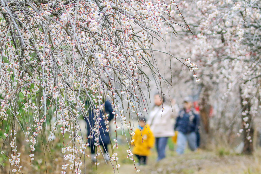 2月20日,游客在浙江省湖州市吴兴西塞山旅游度假区的瀛洲梅园赏花游玩。新华社发(何伟卫摄)