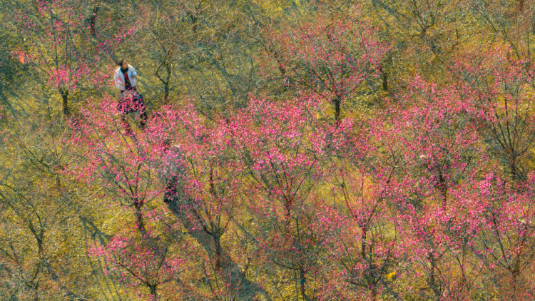 2月18日,人们在南京梅花山踏青赏花(无人机照片)。新华社发(方东旭摄)