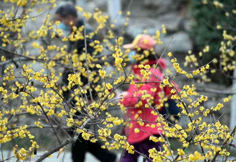 2月23日,市民在河北省石家庄市平安公园腊梅园散步。新华社发(陈其保摄)