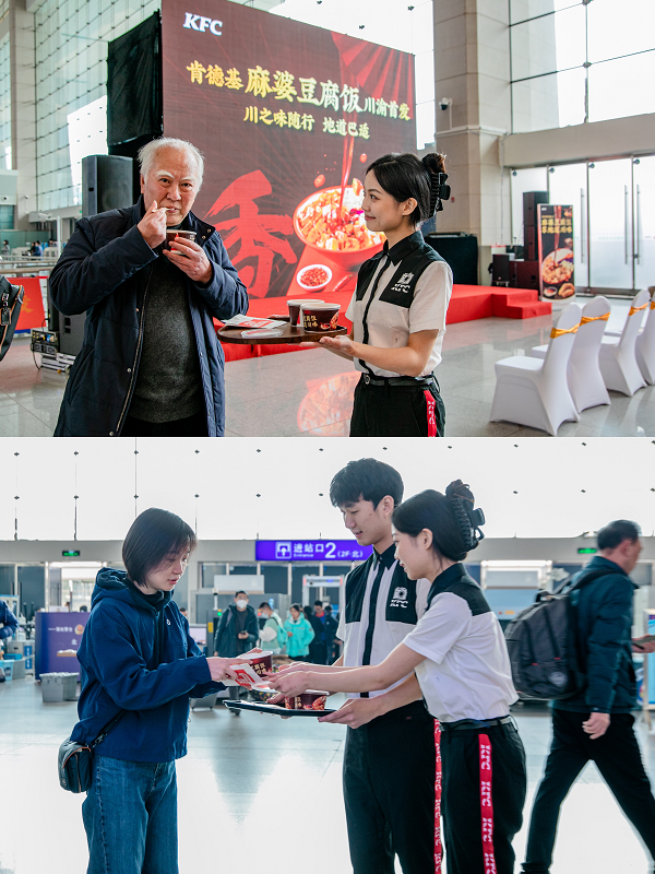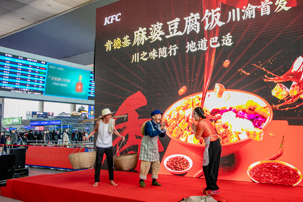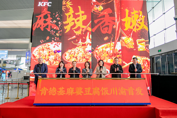 近日,肯德基川渝首款米饭类区域产品“麻婆豆腐饭”在川渝两地近400家门店上市,2月28日下午,名为“川味随行 地道巴适”的首发仪式在成都东站候车厅落地举行。为共同提升川派餐饮美誉度和影响力,支持川菜标准化体系提质增量发展,本次活动邀请到四川省商务厅、四川省市场监管局、中国铁路成都局集团公司及川渝肯德基相关领导莅临现场,共同见证麻婆豆腐作为四川美食文化记忆正式进入肯德基。麻婆豆腐亮相肯德基