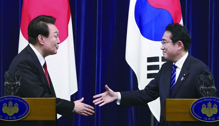 【环球时报综合报道】韩国总统尹锡悦16日飞抵东京,开始对日本进行为期两天的访问。这是自2011年来,两国之间首次有领导人进行国事访问。在当天的会谈中,韩日领导人就重启“穿梭外交”、恢复《韩日军事情报保护协定》等问题达成一致。虽然尹锡悦在会谈后宣称韩日迈向“合作新时代”,但其此次访问在韩国引发巨大争议,舆论指责其为讨好日本而推动的强征劳工“第三方代赔”方案是“卖国”。与此同时,日本有声音认为,尹锡悦政府口中的“让步”并不是真正意义上的妥协。有学者分析称,“第三方代赔”方案不太可能长期掩盖韩日分歧,只会再次播下相互指责的种子,增加令人失望的几率。
