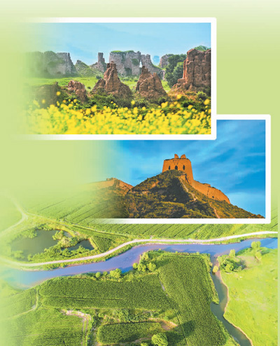 从上至下依次是:朔州市平鲁区高石庄乡大河堡村\广武长城\桑干河两岸美景