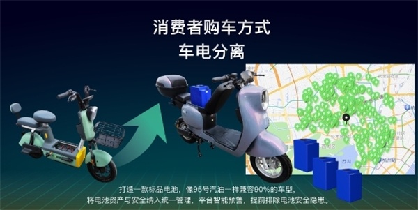 借助“车电分离”,嘟嘟换电可以打造一款标品电池,像95号汽油一样兼容90%的车型,将电池资产与安全纳入统一管理,平台智能预警,提前排除电池安全隐患