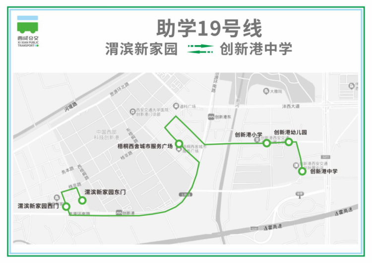 线路走向: 线路由渭滨新家园始发,途经西舍、创新港小学、创新港幼儿园,终点为创新港中学。