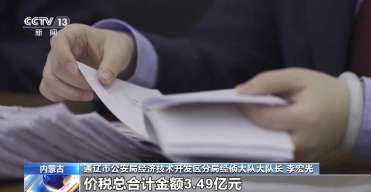 通辽市公安局经济技术开发区分局经侦大队大队长 李宏光:兴安盟4家公司和通辽6家公司,总计对外开具机动车销售统一发票1398份,发票金额3.1亿元,发票税额0.39亿元,价税总合计金额3.49亿元。