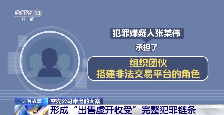 据专案组调查,犯罪嫌疑人张某伟承担了组织团伙、搭建非法交易平台的角色。他通过网络骗取他人身份信息,跨区域批量注册空壳公司,快速骗取空白发票,快速集中虚开,快速逃走失联,形成出售、虚开、收受机动车专用发票的犯罪链条。