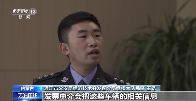 通辽市公安局经济技术开发区分局经侦大队民警 王皓:为了躲避公安机关后续追查,再一个税务部门也有要求,必须是实名的人脸认证,如果他本人前往税务局办理申领发票的业务,就会暴露自己的影像痕迹,然后在网上找了一个冯某,他是通辽的一个兼职的会计。