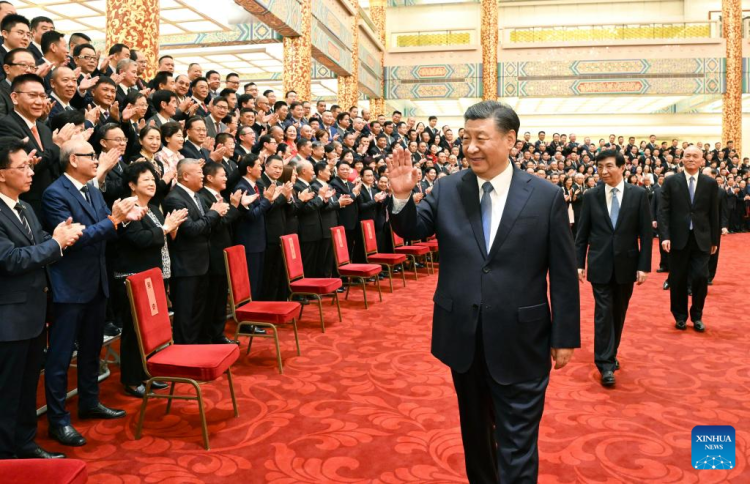 When Xi, accompanied by others, arrived at the Golden Hall of the Great Hall of the People at 10:30 a.m., warm applause arose and lasted for a long time. Xi and others waved to all representatives to extend greetings, talked with them cordially and posed with them for photos.