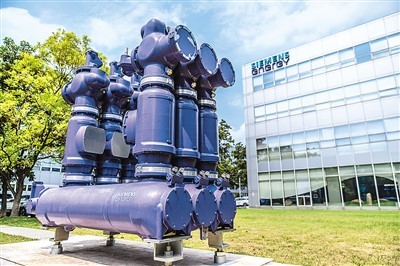 上海西门子高压开关有限公司的门庭内,矗立着该公司研发的西门子能源气体绝缘开关设备(GIS)。