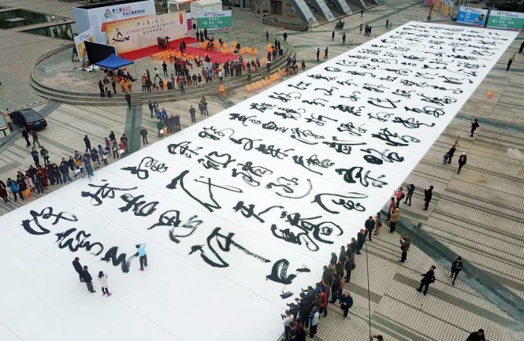 为了讲好“白沙茅龙笔”“茅龙书法技艺”的故事,2019年1月8日,年过六旬的冯才基在江门市五邑华侨广场完成了“世界之最”壮举,用特制2米多高、10多公斤巨大茅龙笔书写2000平方米114个字的巨幅书法《沁园春·雪》,现场一气呵成将茅龙书法技艺发挥得淋漓尽致,众多市民和书法爱好者点赞,好评如潮。