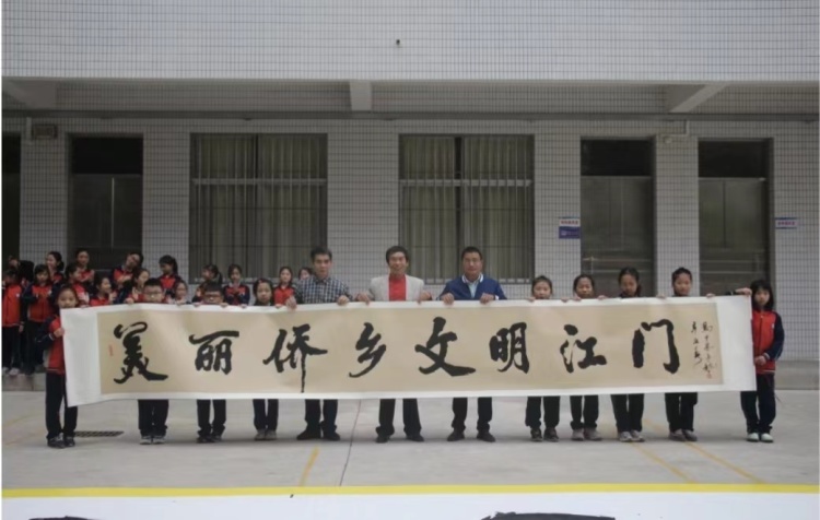 2018年起至今,在江门市江海区的中小学参与创文、建党百年系列影响力大的活动中,都有冯才基亲临现场用茅龙书法挥毫的身影,他完成了《美丽侨乡文明江门》《少年学子 童心向党》等一幅幅巨作,近距离在孩子们面前展现出茅龙笔书法技艺创作的魅力,让下一代从小传承茅龙书法技艺。