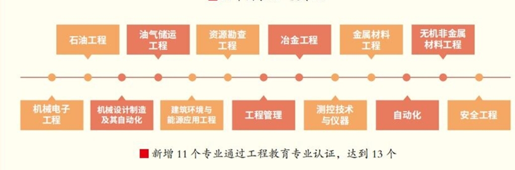 当前,学校围绕石油冶金行业转型升级、国家及地方关于新能源、新材料、人工智能、双碳目标、生态文明建设等重大发展战略需求,形成了油气勘探与绿色开发、低碳冶金与先进材料、高端装备与智能制造、能源化工与智慧安全、土木水利与生态环境、数理科学与大数据技术、经济贸易与现代管理、人文科学与艺术设计等八大学科集群。
