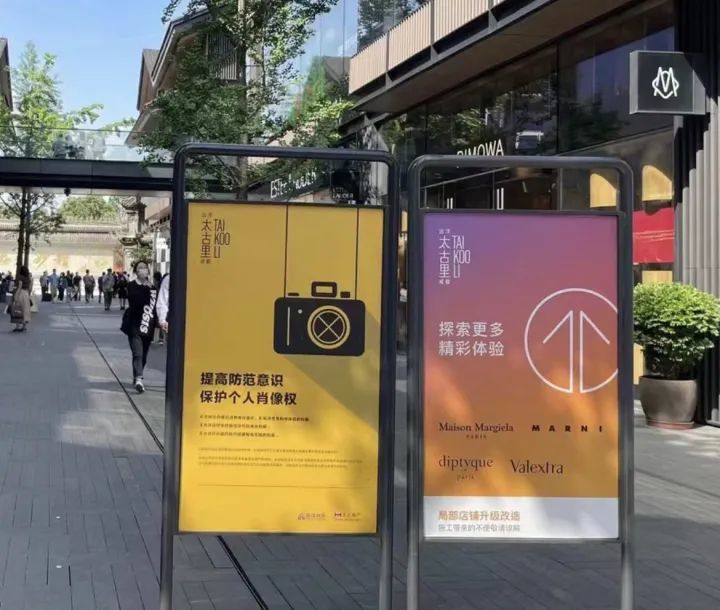 事实上,多年前太古里街头就立有一块关于街拍的提示牌。
