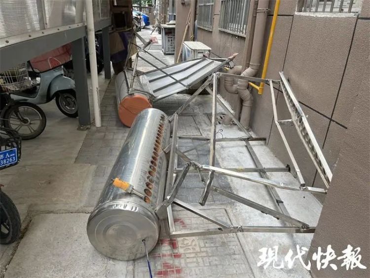 近日,就有家住集庆路殷高巷的部分业主向现代快报记者反映,他们一个院子里就落下两台热水器,砸坏5辆车。 由于小区去年刚刚出新,业主怀疑出新单位施工时对太阳能热水器的固定措施有扰动,至少是没有尽到安全考量的责任,放任了屋顶的风险隐患。对此,出新单位也出面协调处理此事。