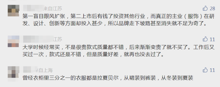 拉夏贝尔是否会破产清算尚未可知,不过当“拉夏贝尔被申请破产清算”的消息登上热搜时,不仅引发了网友的集体回忆杀,也激起了消费者的购买欲。