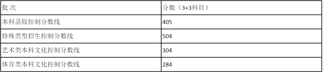 本科文化成绩控制分数线: 303分