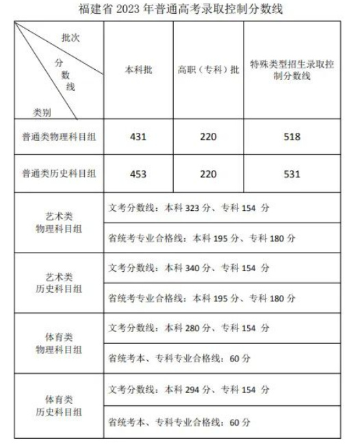 6月24日下午,福建省高等学校招生委员会召开全体会议,研究确定我省2023年普通高考切线方案,部署高招录取工作。经会议研究决定,福建省2023年普通高考各类录取控制分数线具体如下↓↓