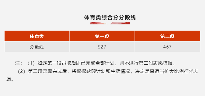 三、体育类录取控制分数线