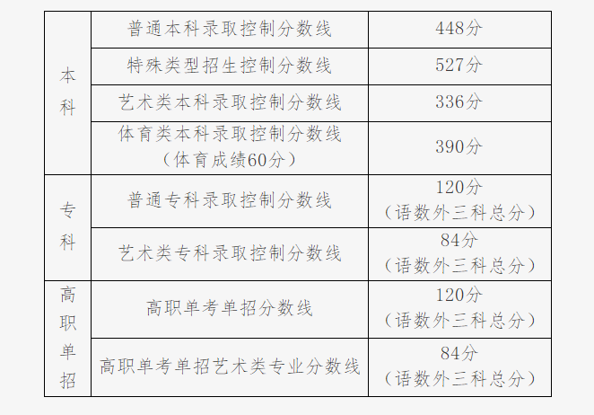 我省2023年普通高校招生各批次录取控制分数线
