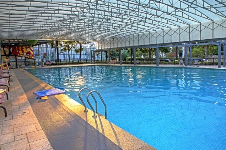 有的小区给泳池加装遮阳棚,