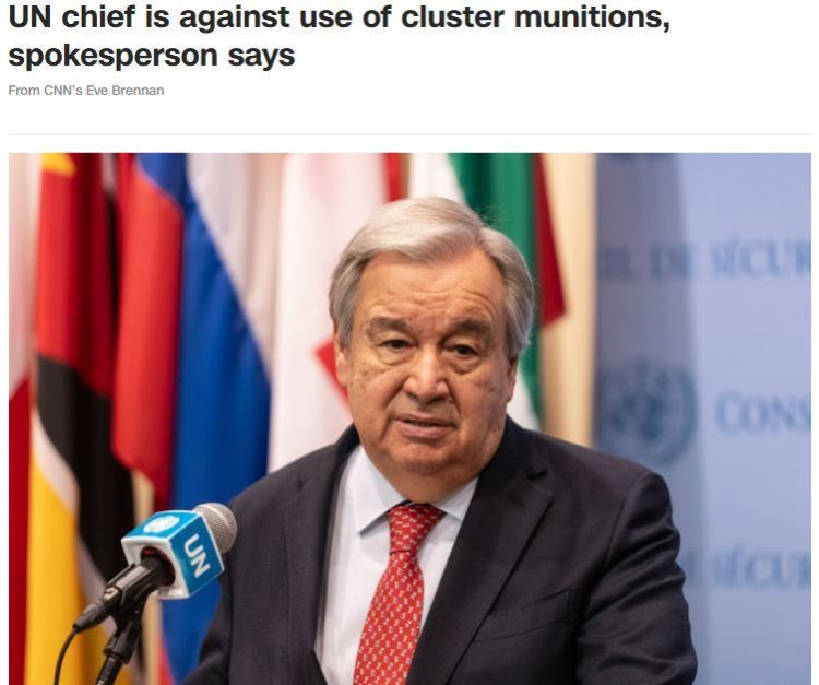 联合国秘书长古特雷斯对此表示担忧,称集束弹药将对平民构成长期威胁, “这些弹药不能在战场上使用”。