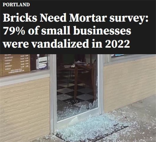 今年3月的民调显示,在俄勒冈州最大城市波特兰,此前12个月中,有79%的受访企业经历过打砸抢事件,其中19%的商铺经历过五次以上!