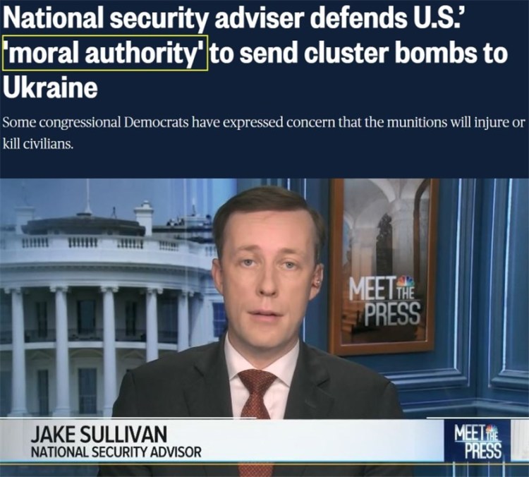 虽然美国向乌克兰提供集束弹药的行径近期一直遭到国际社会和舆论的广泛批评,但美国总统国家安全事务助理沙利文竟还宣称,向乌克兰提供集束弹药并不妨碍美国依然保有“道德权威”。
