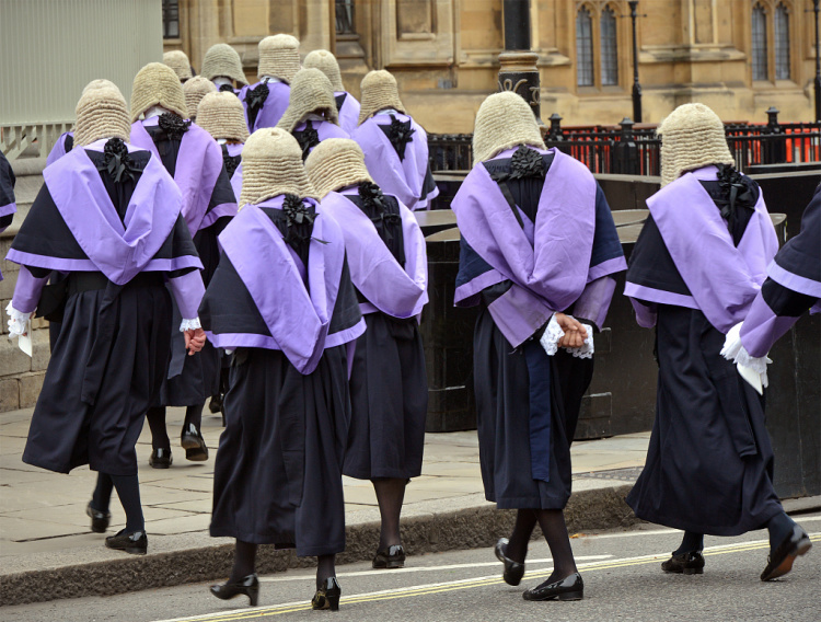 而当教士彻底从法官队伍中离开时,法官职业群体就成了纯粹的世俗官员。哈格里夫斯·莫兹利在《英国律师错位的传统》一书中说道:“几乎在所有的国家,教士从市民法院消失之日,也就是明确的法律服装出现之时。”国王为法官们提供薪水,同时为了凸显法官的重要性,国王也需要赐予这一职业群体特殊的服装。虽然从理论上来看,法官职业服装是因为与教会割裂才得以诞生的,但数百年来的传统已经难以抛弃,带有世俗色彩法官制服依然是长袍为基本特色,无非从“教袍”变成了“法袍”。